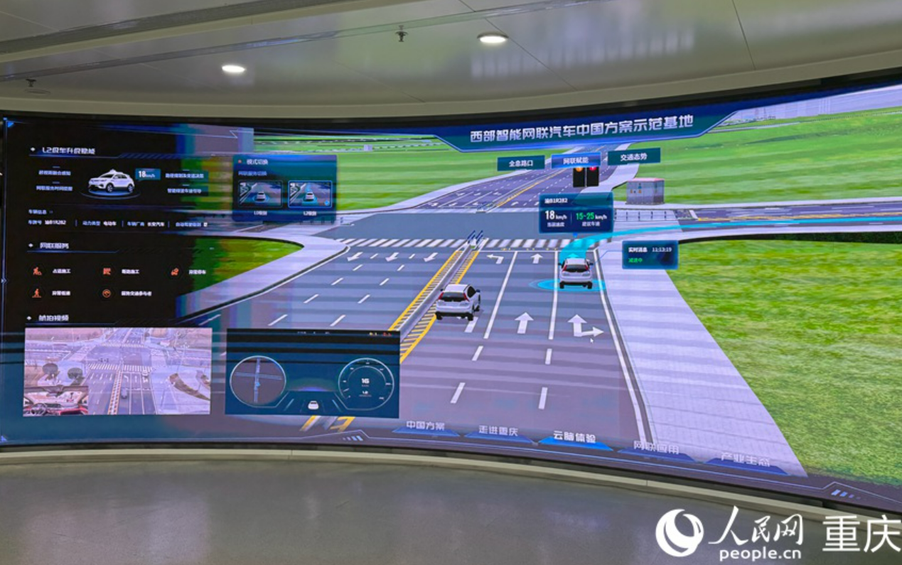 西部(重庆)科学城智能网联汽车实时监控屏幕。人民网记者 胡虹摄